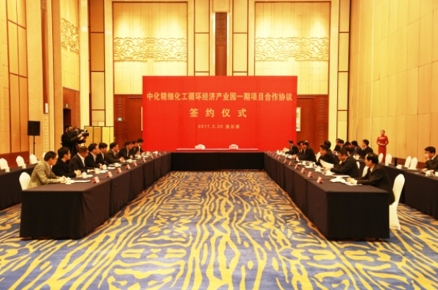 In the afternoon of March 30, the cooperation agreement for the phase I project of Sinochem International Fine Chemical Circular Economy Industrial Park was signed between Sinochem International and Xuwei New District of Lianyungang, which marks official settlement of Sinochem Fine Chemical Industrial Park Project in Xuwei New District. Feng Zhibin, Vice President of Sinochem Group and Board Chairman of Sinochem International Corporation, Liu Hongsheng, General Manager of Sinochem International Corporation, Cheng Xiaoxi, Deputy General Manager of Sinochem International Corporation and Board Chairman of Jiangsu Yangnong Chemical Group Co. Ltd, Yang Xingshi, Secretary of Lianyungang Municipal Party Committee, Mayor Xiang Xuelong and others attended the signing ceremony.
